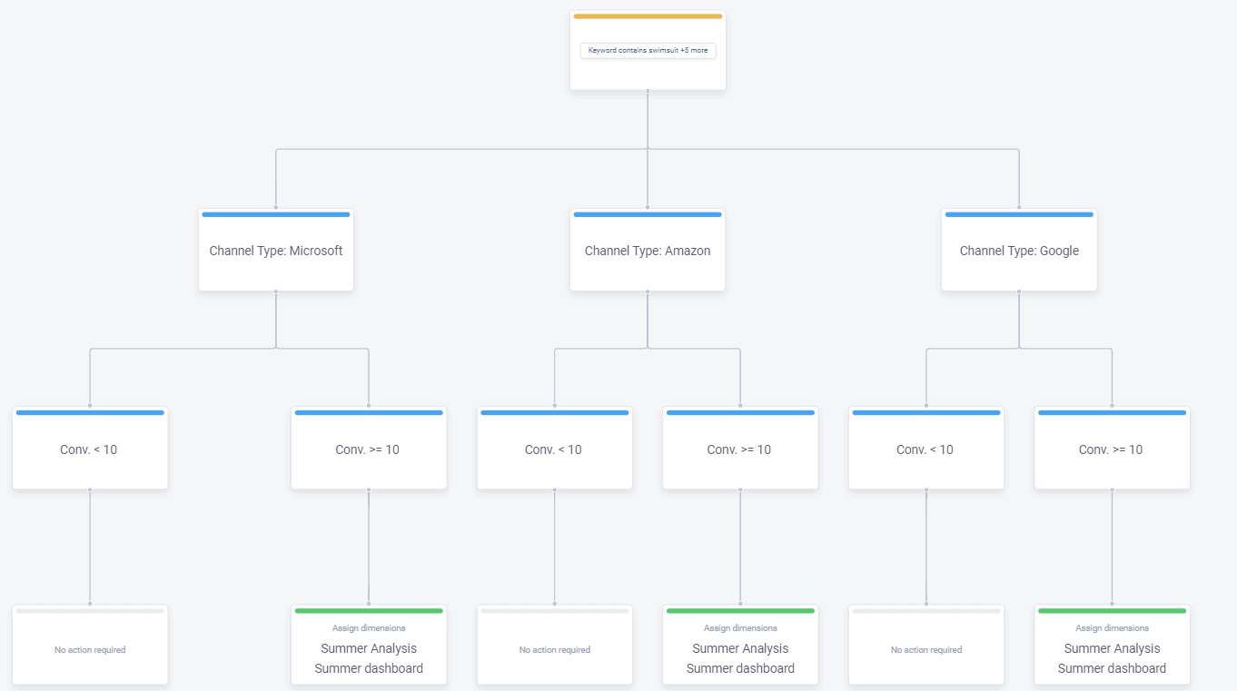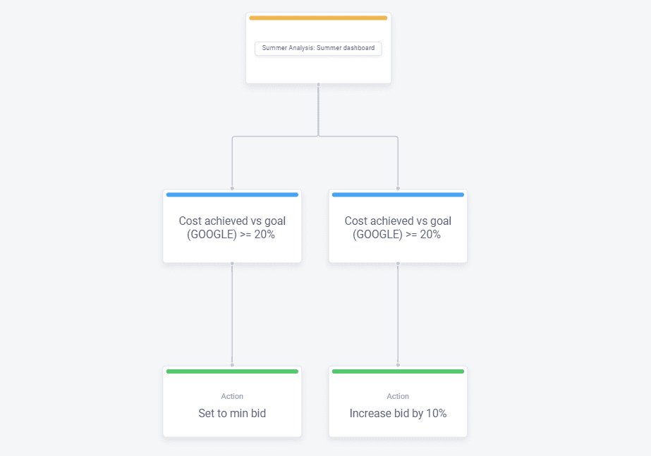 When you combine Advanced Automated Actions with the flexibility of Skai dimension tagging, the possibilities are endless. Instantly, complex multi-step workflows can become really simple to manage.