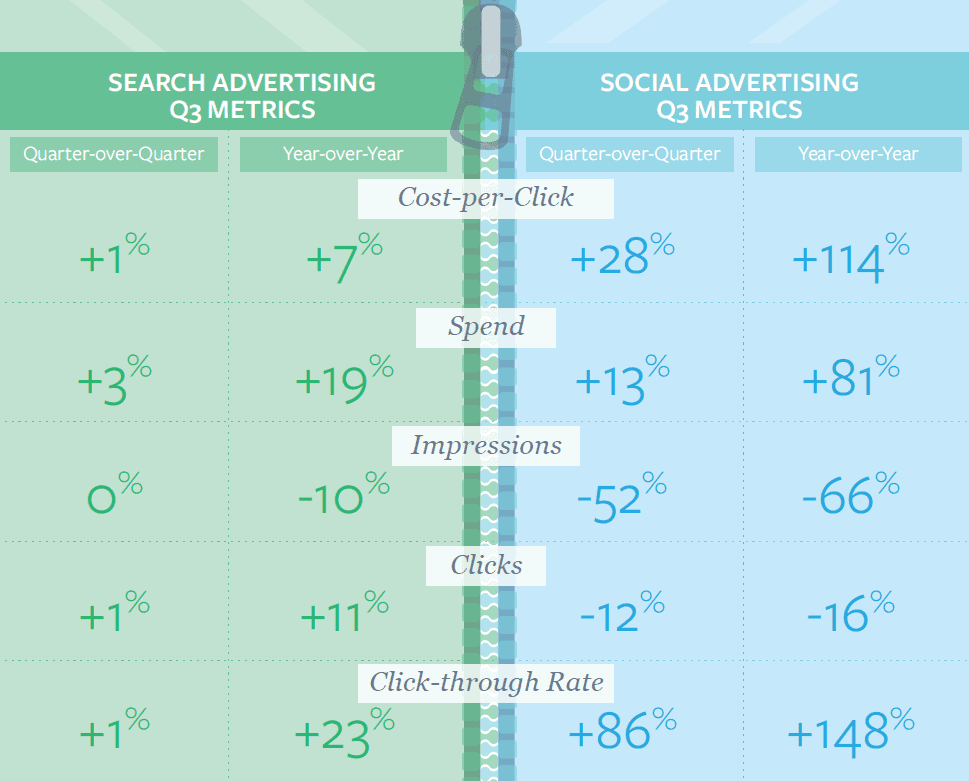 Another quarter has come to a close and, as captured in our Q3 search and social infographics, digital marketers are continuing to invest in both search and social advertising, generating synergies across channels that have driven increases in total return on investment.